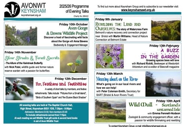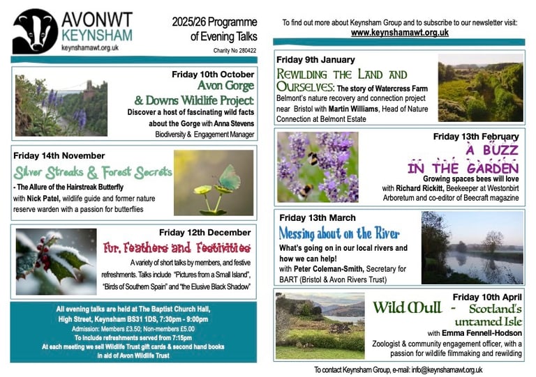 All talks take place in the Baptist Church Hall, Keynsham BS31 1DS. They commence at 7:30pm, with refreshments available from 7:15pm