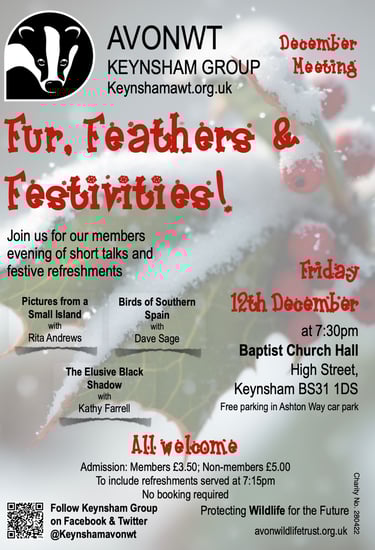 Wildlife cards, second hand books and other items are on sale at our meetings in aid of Avon Wildlife Trust.
