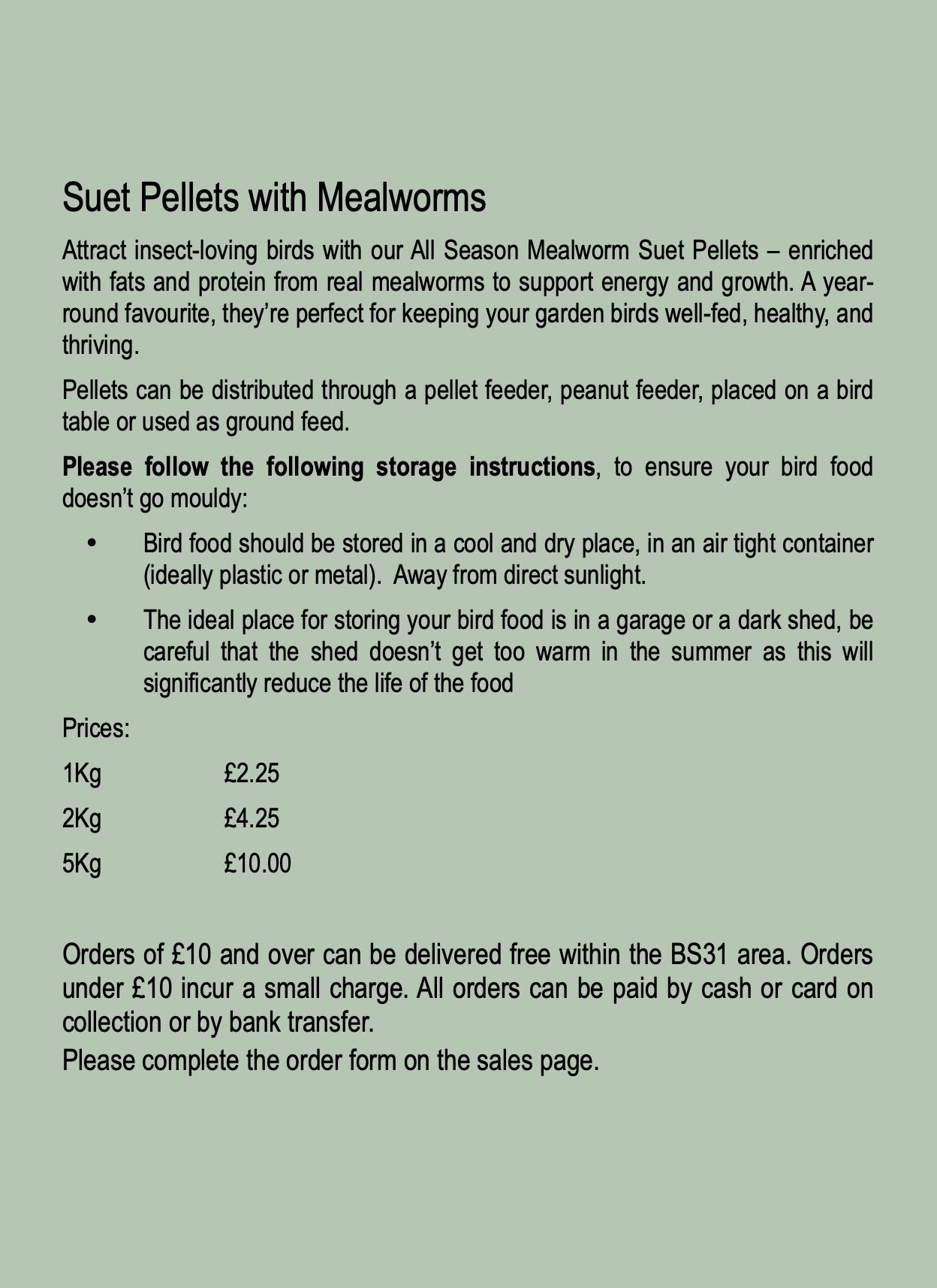 While stocks last, order £20 of products from our Sales page (can include greetings cards) and receive a 2kg bag of Robin High Energy Autumn/Winter seed mix free of charge!