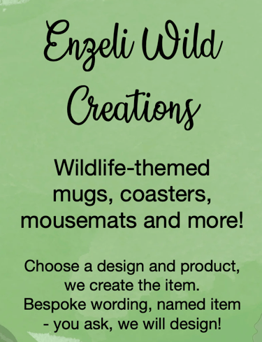 Wildlife themed 11oz china mugs with white interior and handle. Check out the catalogue for all the options - see above. The mugs are dishwasher safe.